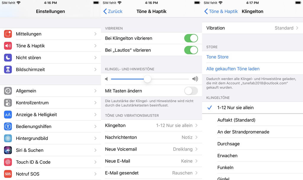 Öffnen Sie das iPhone und gehen zu Einstellungen > Töne & Haptik.