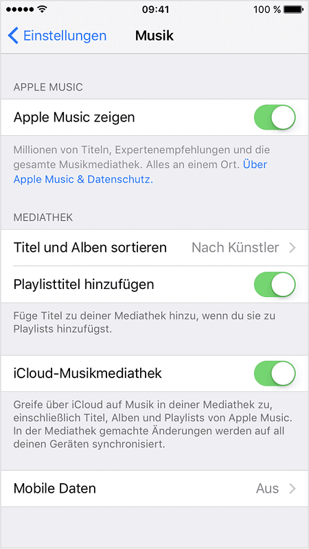 Wenn Sie iCloud-Musikmediathek deaktivieren wollen, können Sie nach obigen Schritten die Optionen ausschalten.