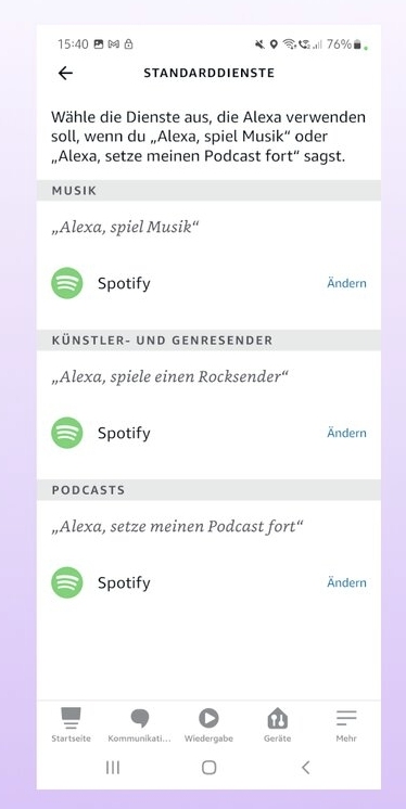 Dann können Sie Spotify als den Standardmusikdienst festlegen, damit es bei deinen Sprachbefehlen bequem ist.