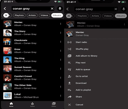 Schritt 2. Wählen Sie Songs, Alben oder Playlists aus, die Sie herunterladen möchten.